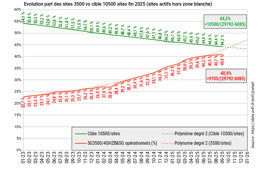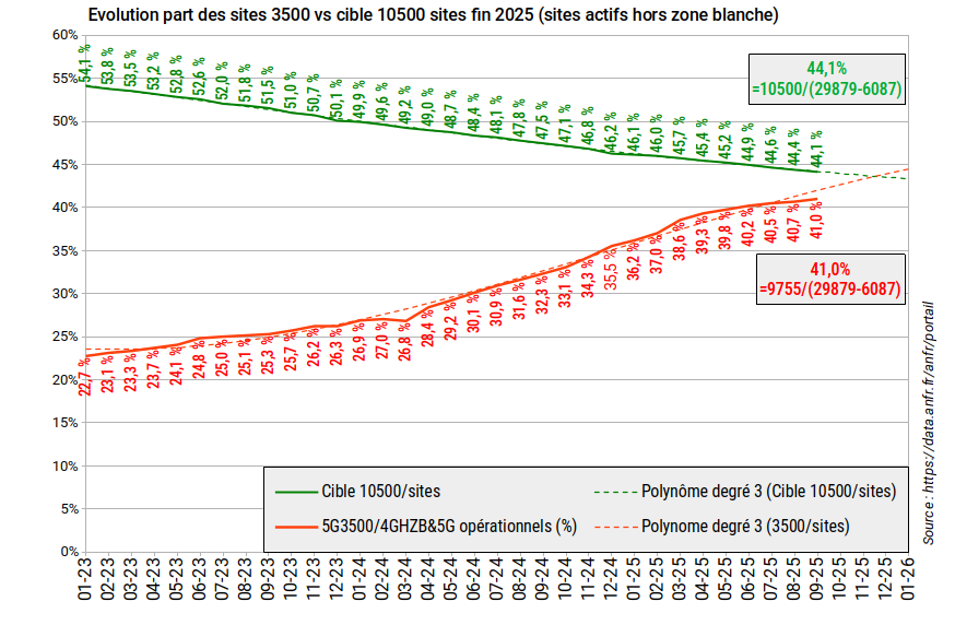 Objectif ARCEP (10500 sites opérationnels en 3500 GHz au 01/01/2026)