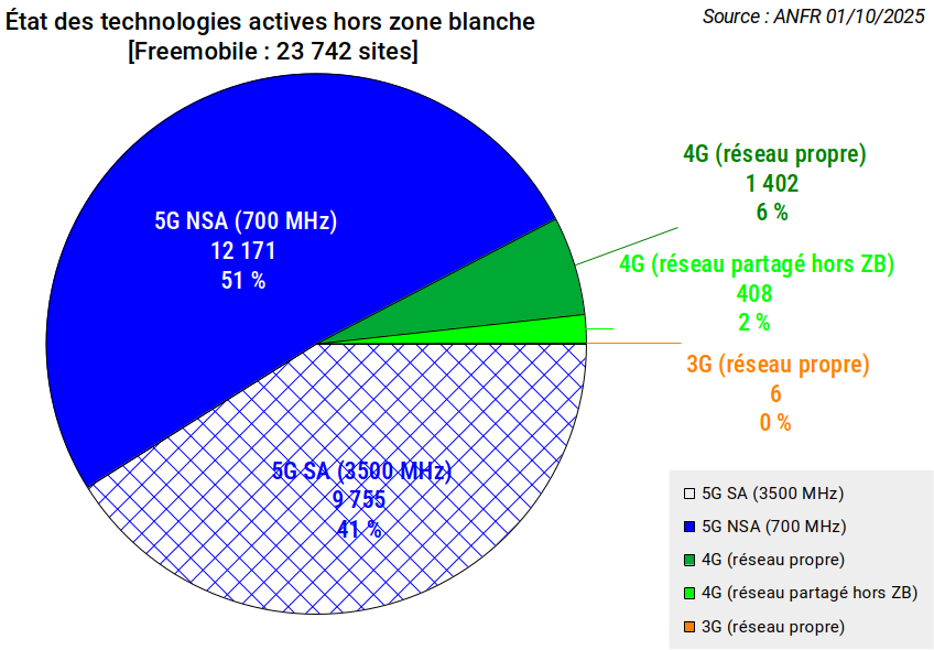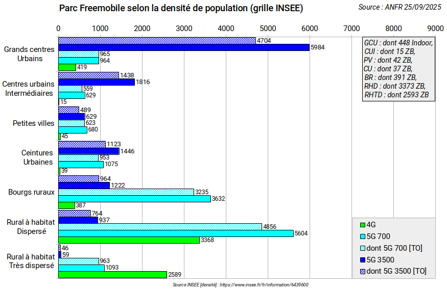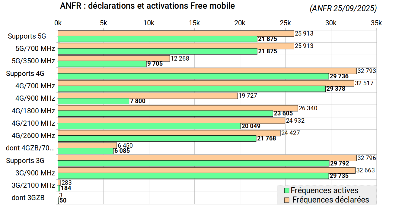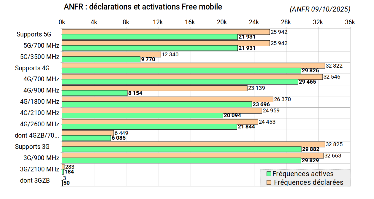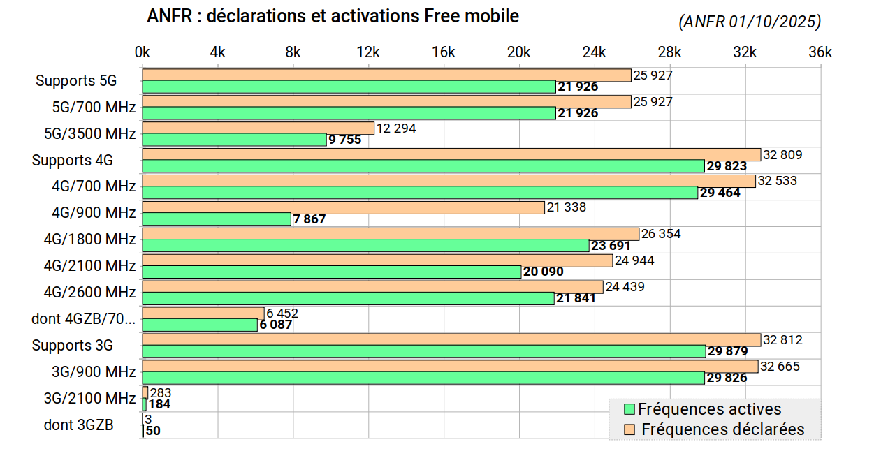 Interprétation : Freemobile va devoir légèrement infléchir sa politique actuelle entamée fin 2022 (déploiement de la 3500 couplée au déploiement de nouveaux sites) au profit de la politique conduite en 2020-2022 qui privilégiait l’upgrade de sites existants à l’instar des autres opérateurs.