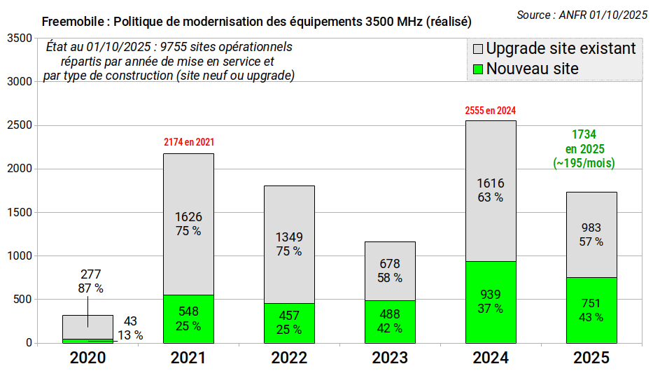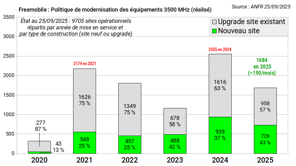 En effet, les 1684 sites livrés en 2025 sur 8 mois et 3/4 représentent une moyenne mensuelle de ~190 sites.