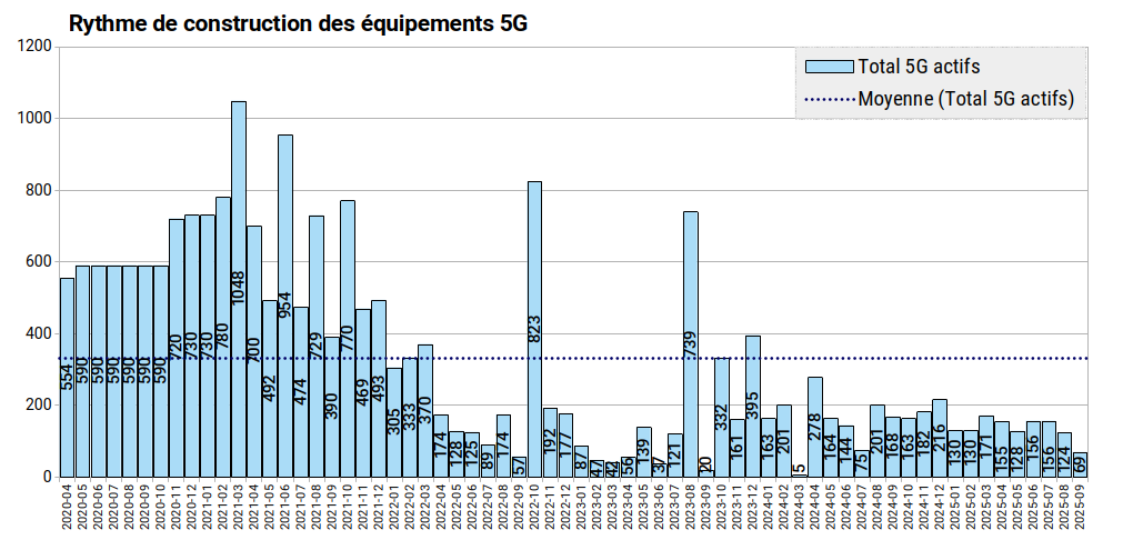 En effet, les 1749 sites livrés en 2025 sur 9 mois représentent une moyenne mensuelle de ~195 sites.