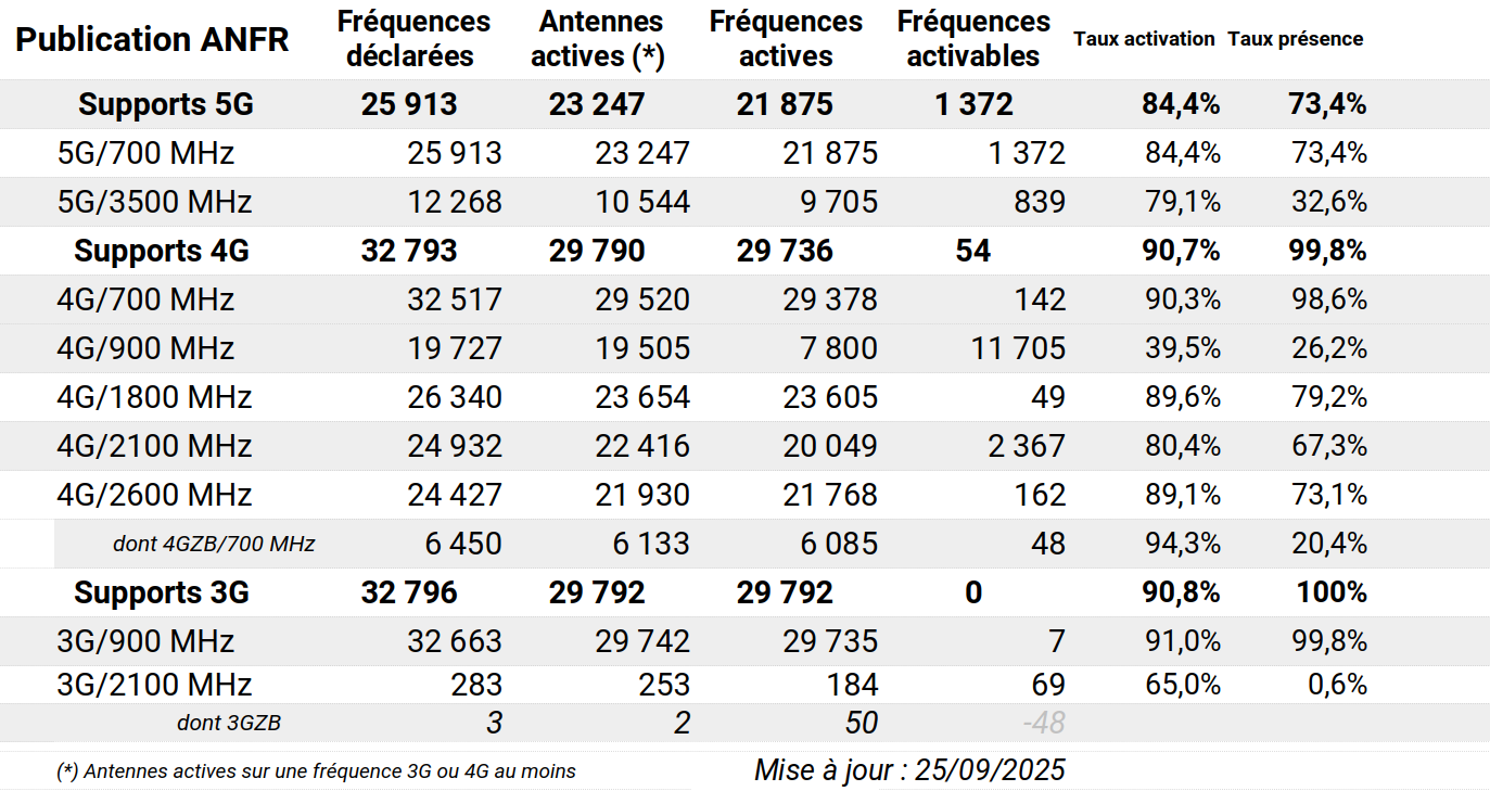 Dernière publication hebdomadaire ANFR (25/09/2025)