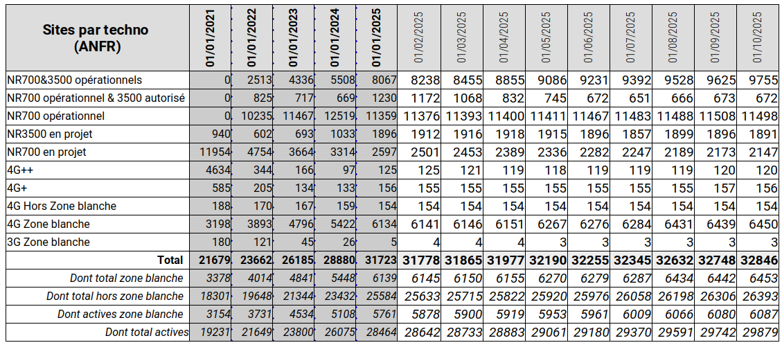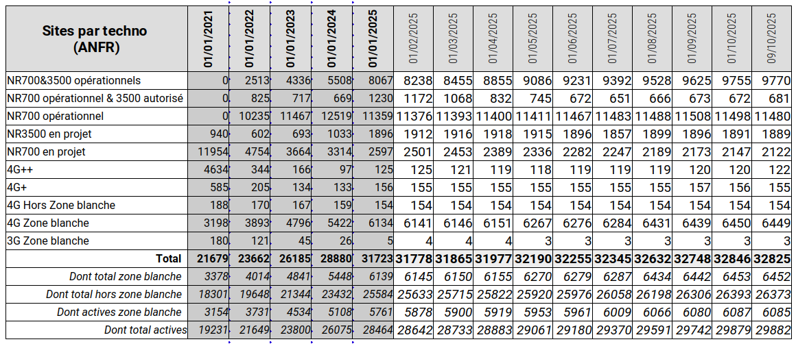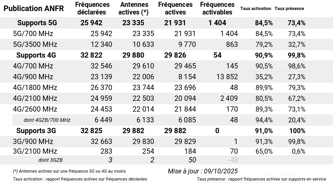 Dernière publication hebdomadaire ANFR (09/10/2025)