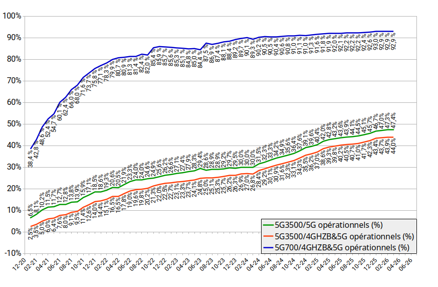 L’obligation de l’ARCEP de 10500 sités équipés en 3500 MHz a ainsi pu être finalisée au 31 décembre 2025.