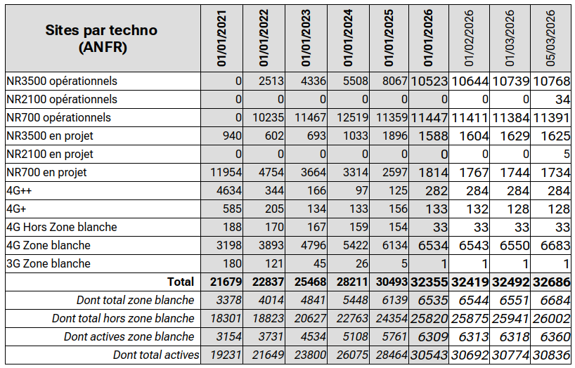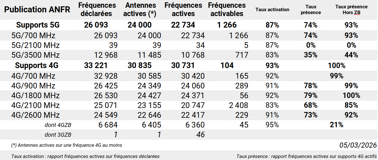 Dernière publication hebdomadaire ANFR (05/03/2026)