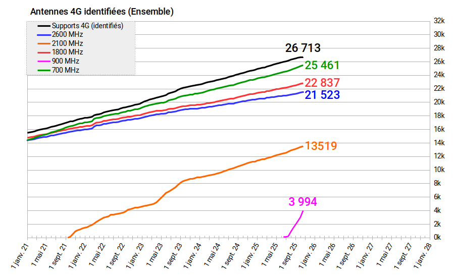 Le cumul des supports 4G identifiés par un contributeur dépasse largement les 25 000 sites.