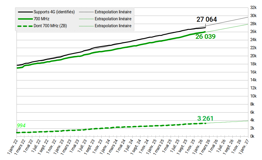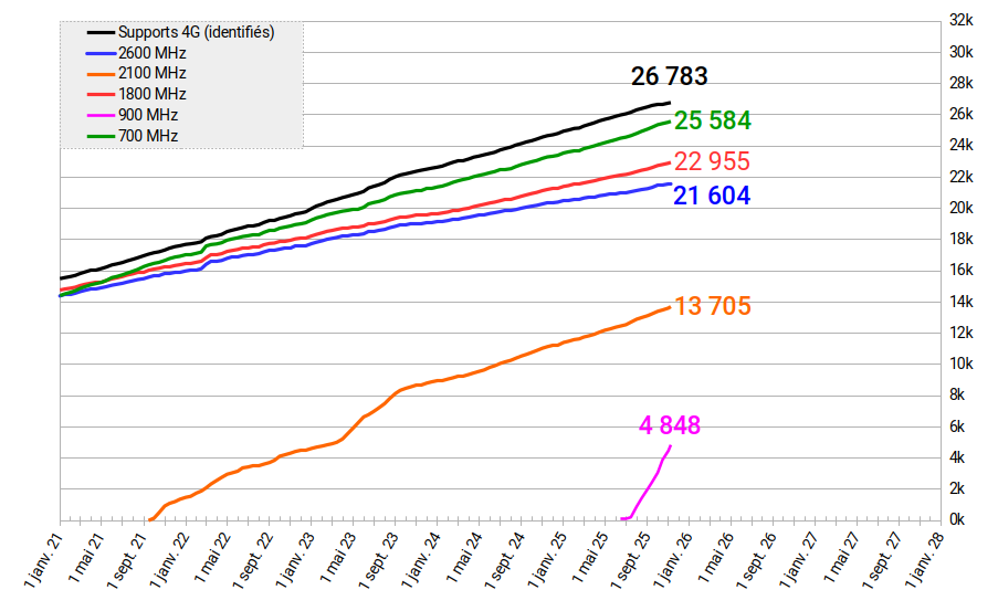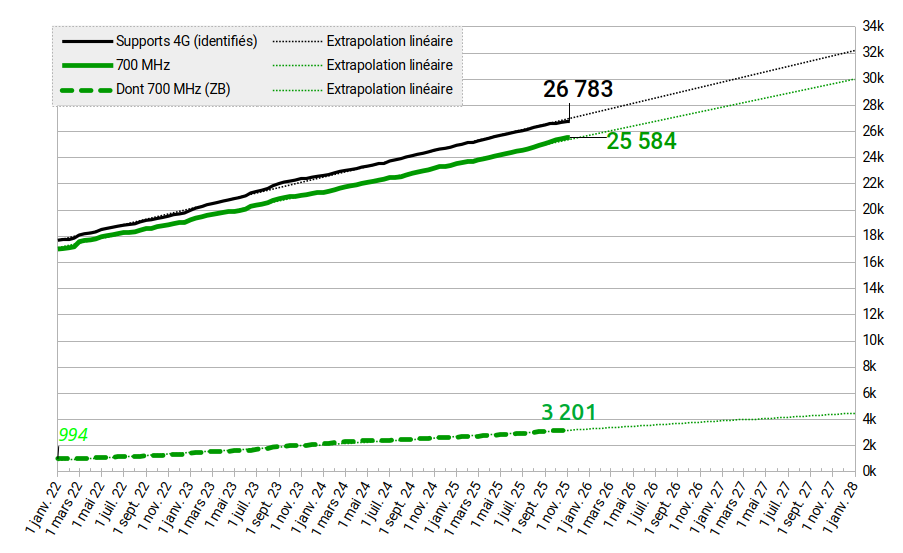 Le cumul des supports 4G identifiés par un contributeur dépasse largement les 25 000 sites.