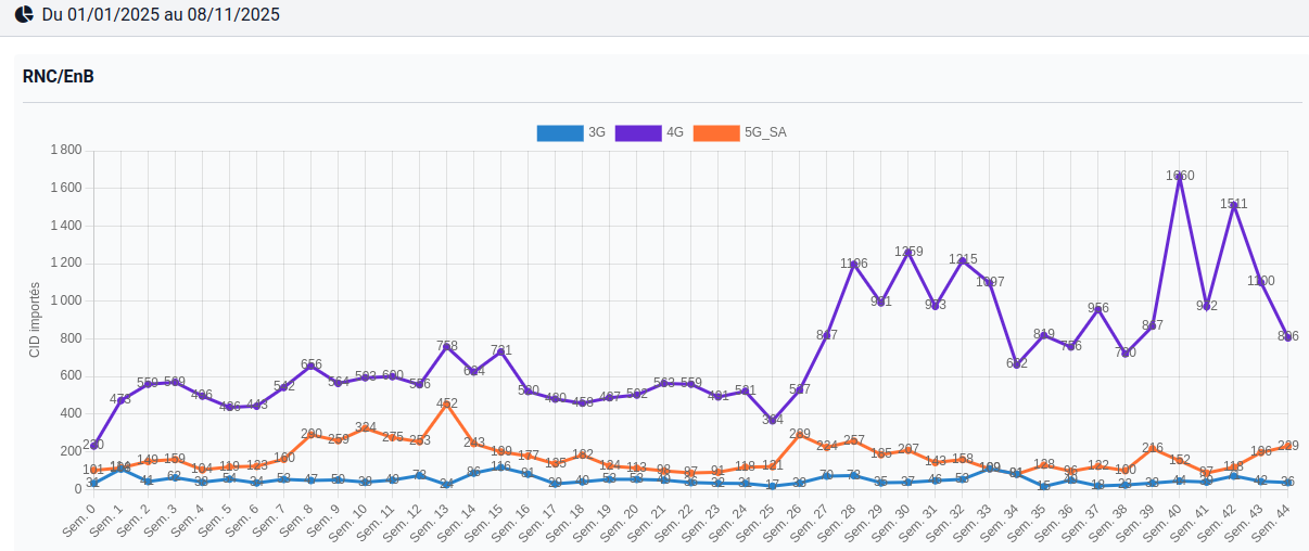 Statistiques sur la collecte des CID par semaine (3G à 5G SA)