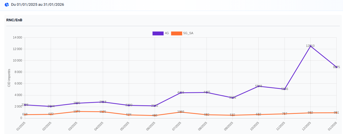 Statistiques sur la collecte des CID par mois (3G à 5G SA)